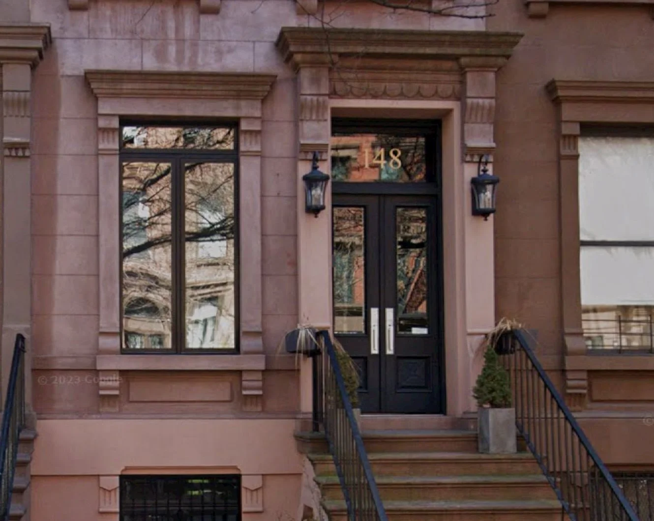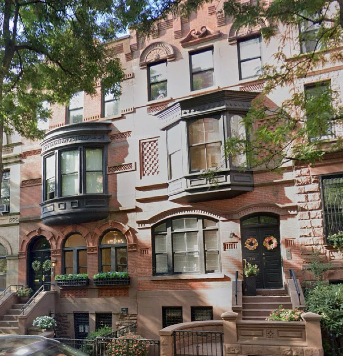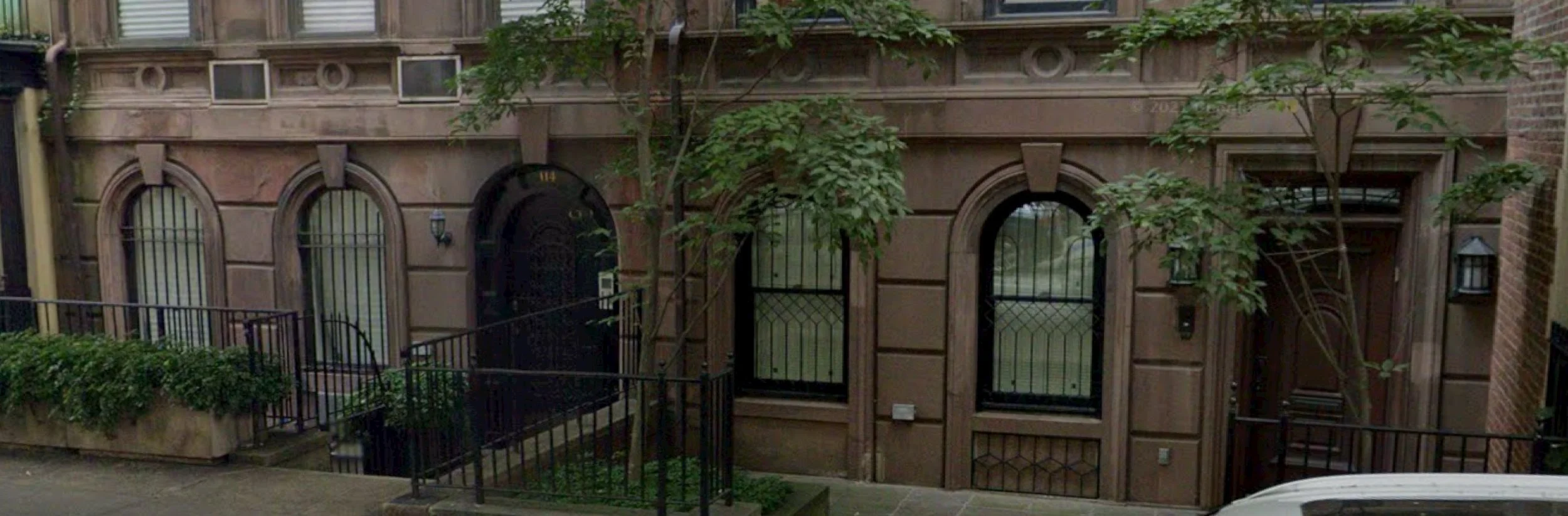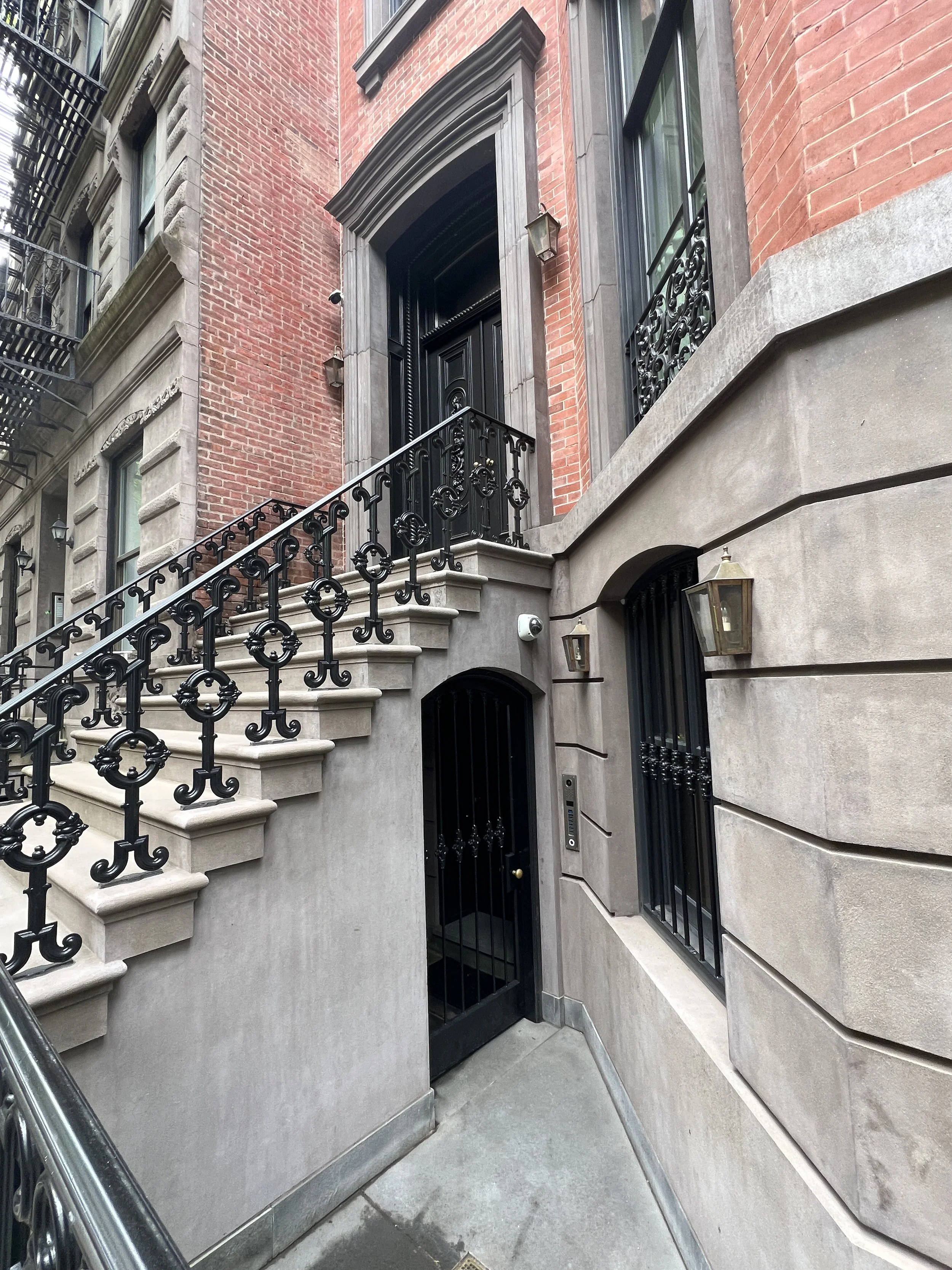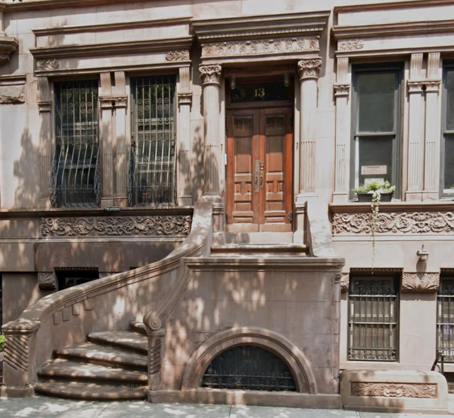 Sunken entrances at 114 & 112 E. 70th St (1869), Lenox Hill.