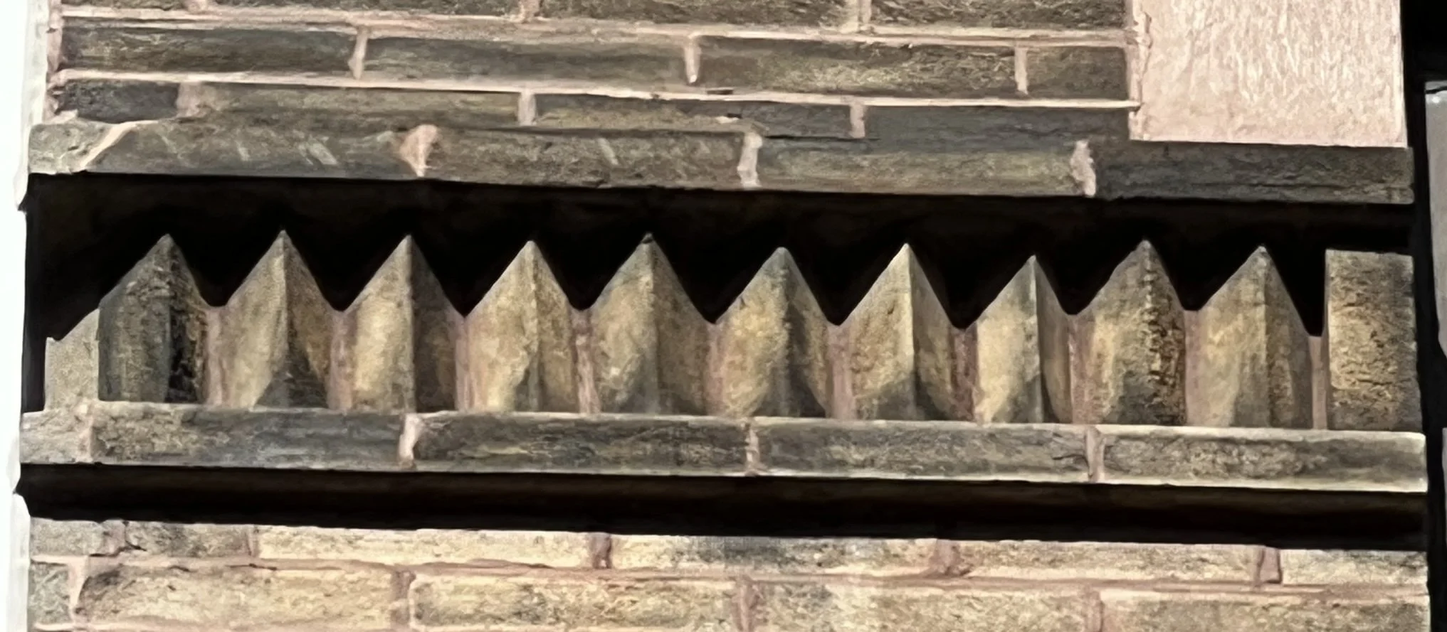 Brickwork became more complex and textured with corbelling and the introduction of sawtooth and other patterns.
