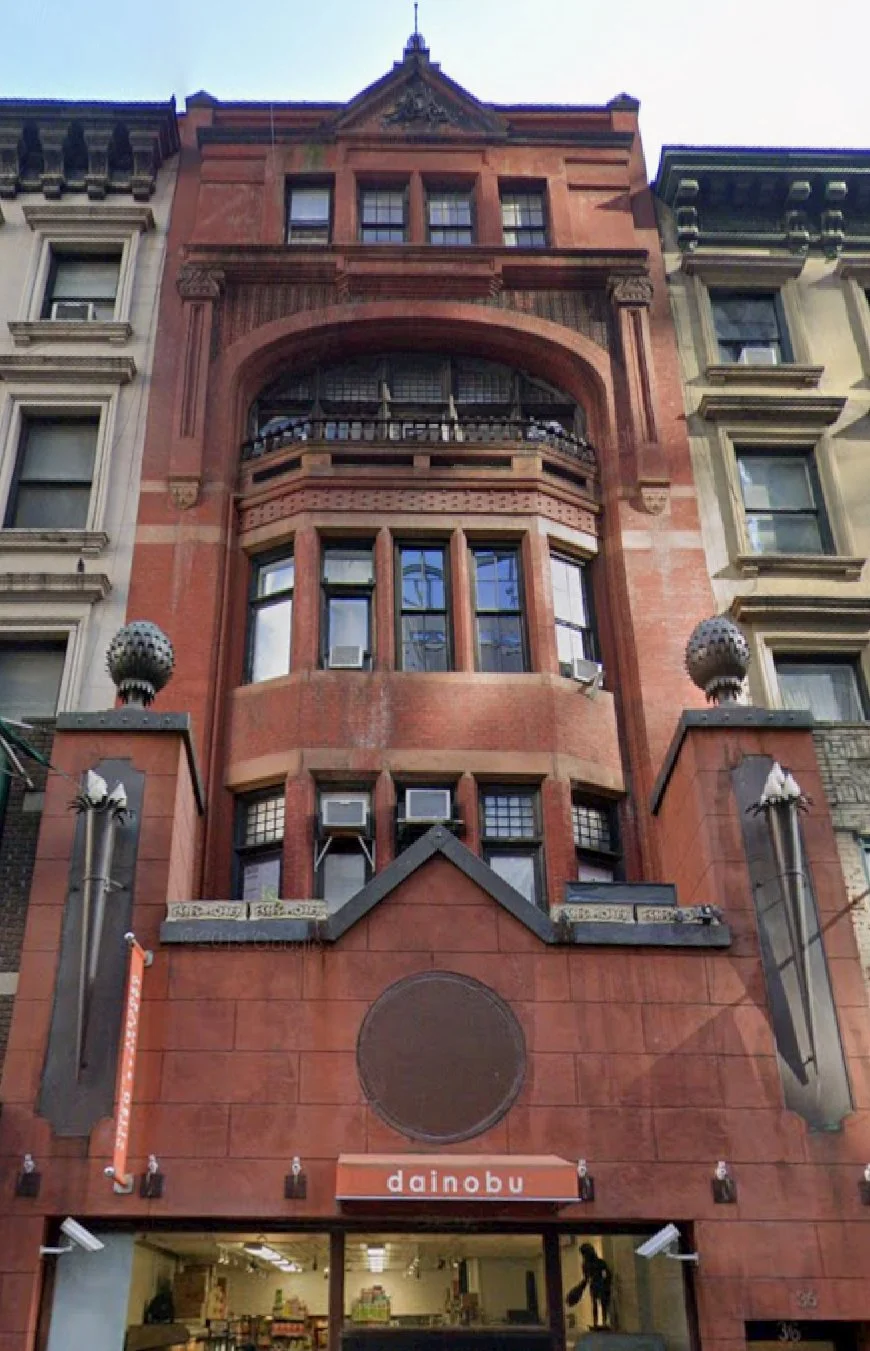 128 E.58th St. A pair of once upscale brownstones. At one point, they were joined into a single building and became the home of one of the city’s elite music conservatories. Their function now, at least from the outside, is unclear.