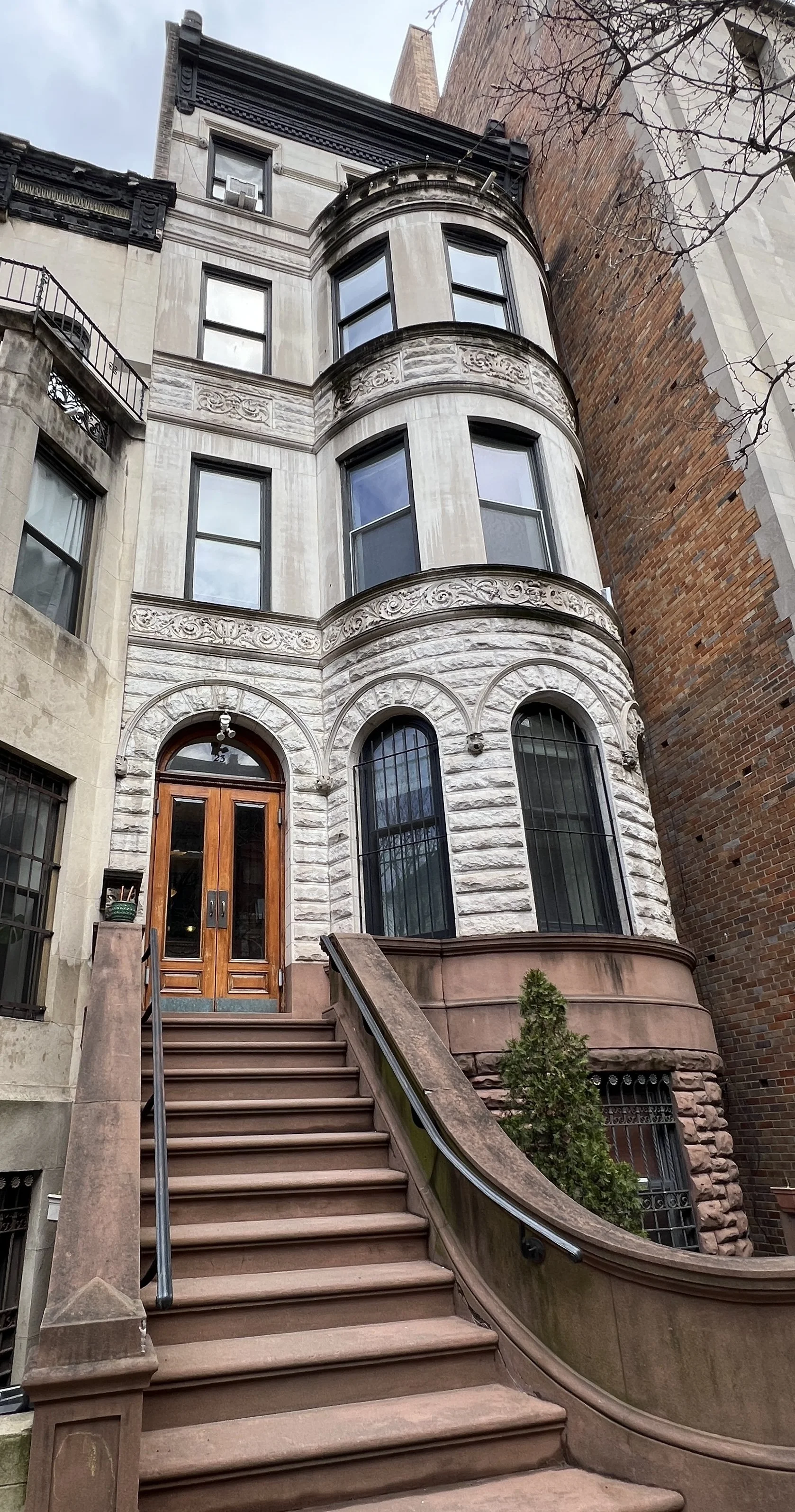 13 W 122nd St. (1887), Harlem. Unusual curving stoop staircase (which mirrors it’s neighbor at 15 W 122nd).