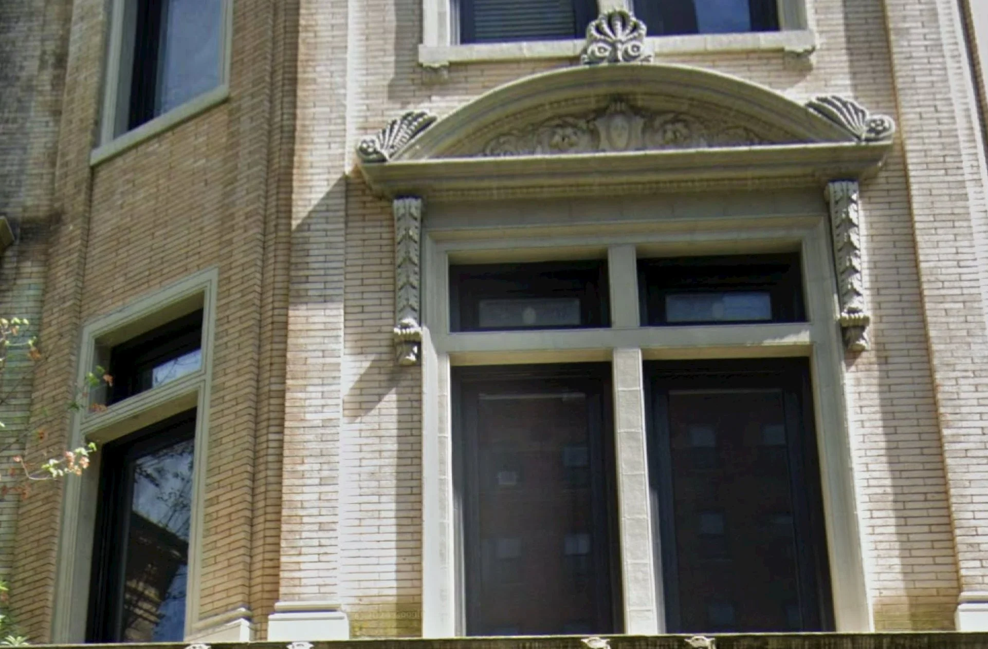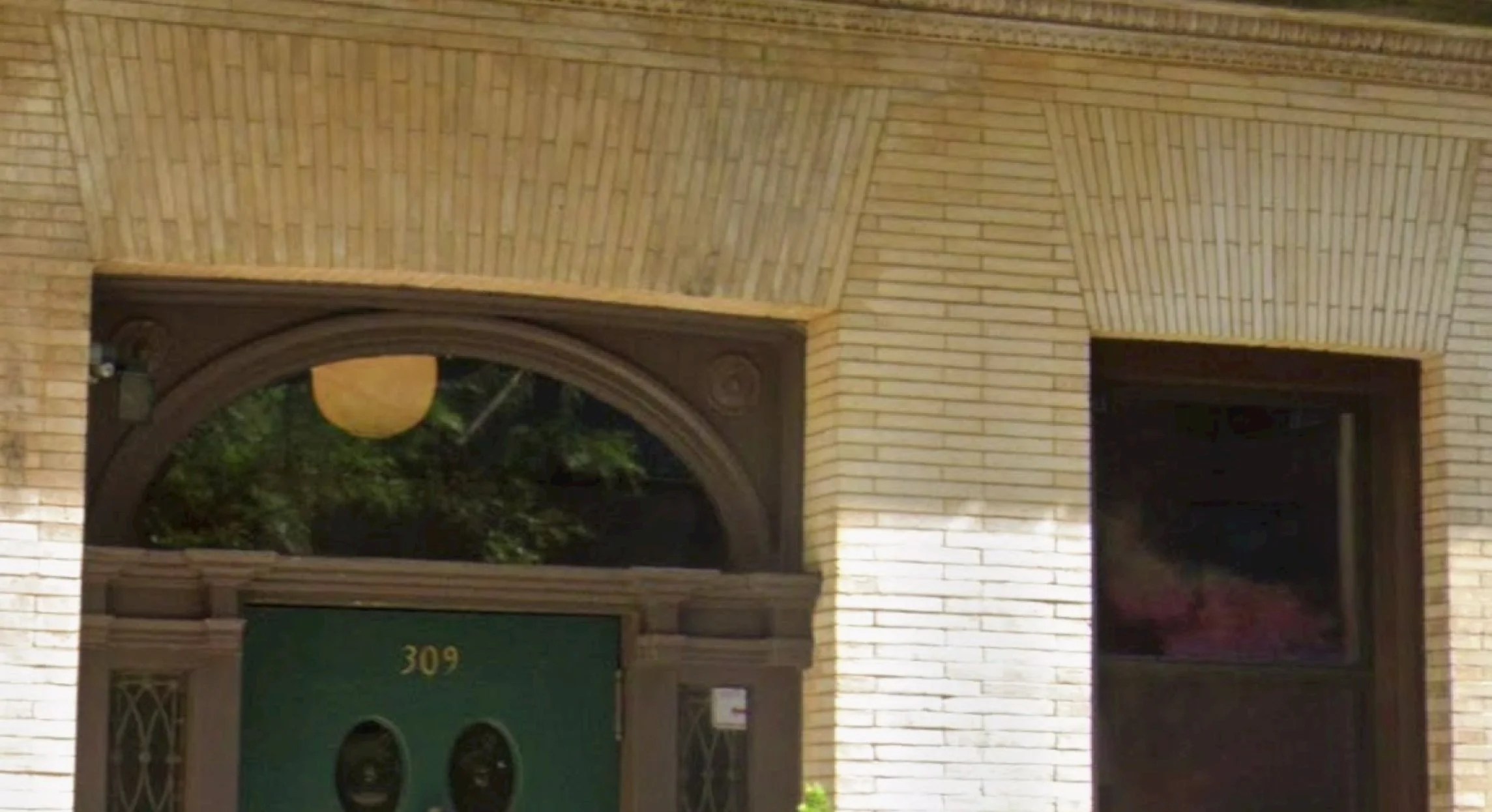 ‘Flattened’ brackets flanking the doorway and window on 412 E. 84th St.