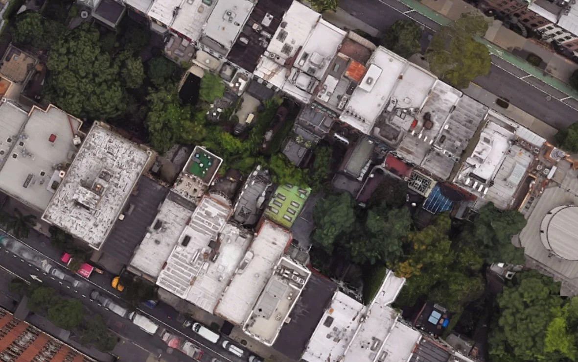 The corridor between the 200 blocks of East 60th and East 61st St shows all manner of extensions to the backs of these brownstones.